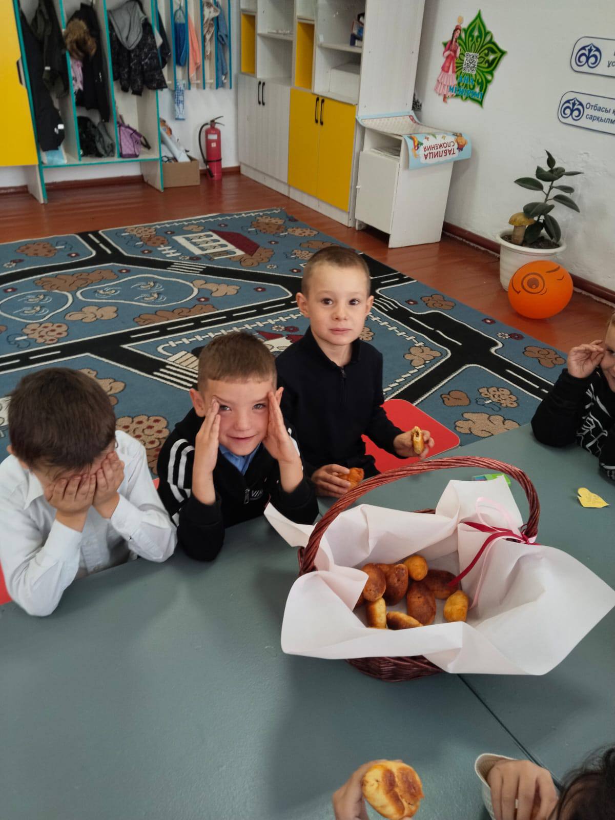 мақсаты: еңбекке деген құрметті қалыптастыру, үнемді болуға үйрету.Балалармен нанның қайдан шыққандығы туралы әңгімелесті," нан жолы"интерактивті мультфильмін қарастырды.Балалар кезек-кезек "өрістен үстелге дейінгі нан жолы "тізбегін құрап, арқан тарту қазақ халық ойынын ойнады. Сынып сағатының соңында балаларға кондитерлік өнімдер ұсынылды