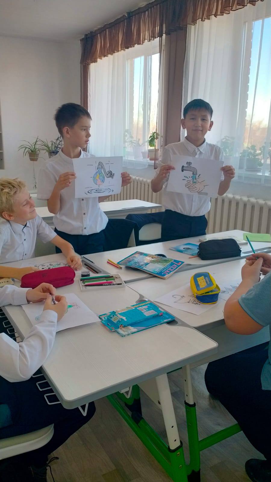 Экологиялық білім беру аясында 5-8 сынып оқушылары суды ұтымды пайдалану мәселелеріне арналған дөңгелек үстелге қатысты. Балалар су ресурстарын сақтау неліктен маңызды екенін талқылады, үйде және мектепте суды үнемдеудің өзіндік тәсілдерін ұсынды, отбасылық және мектептегі "эко-әдеттер"мысалдарымен бөлісті.